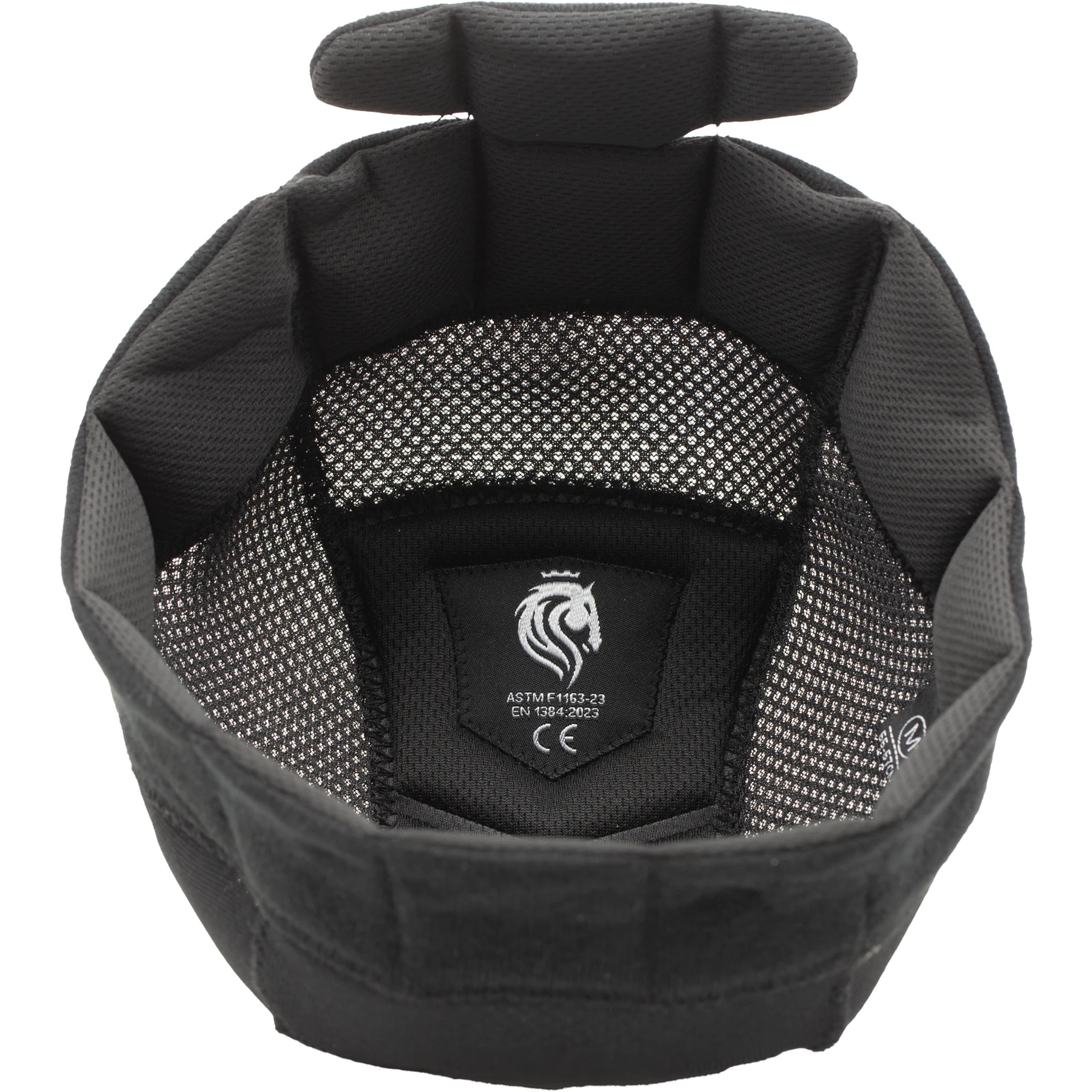 El sistema de ajuste trasero con dial y el arnés acolchado de liberación rápida aseguran un ajuste personalizado y seguro para jinetes de todas las tallas.
