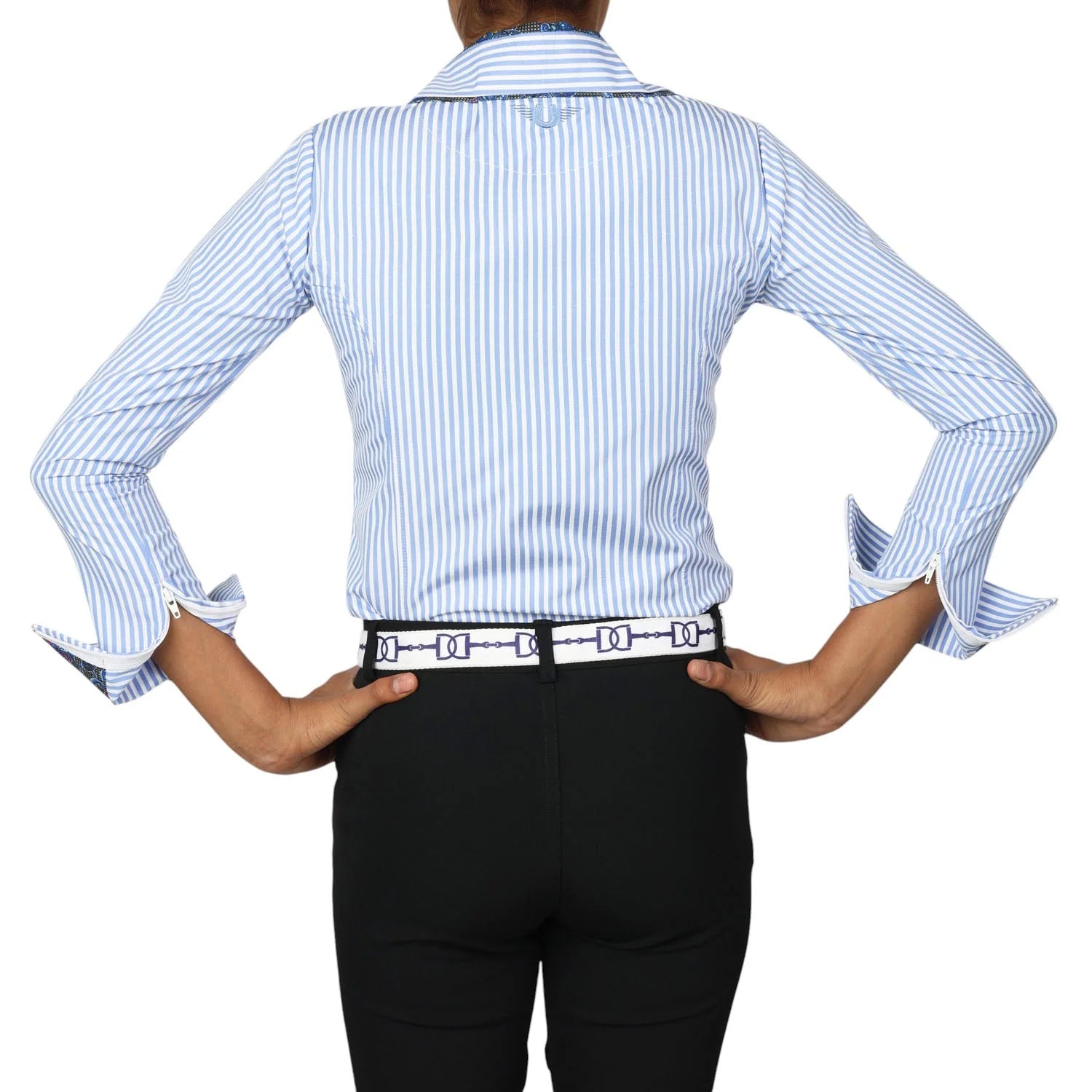 The TuffRider Girls Adey Double Collar Shirt brings modern style and comfort to young riders. Designed with a flattering fit and functional details, this shirt is perfect for lessons, schooling, or casual show days.